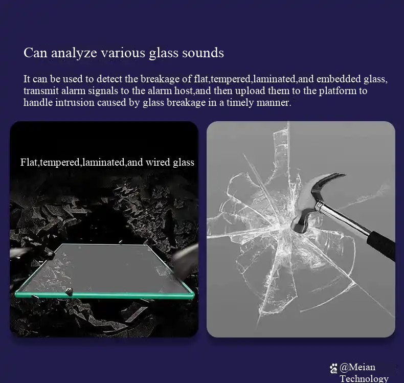 Special material glassSuch as tempered glass and laminated glass, these glasses have special physical and chemical properties, and the detector needs to have a certain recognition ability to accurately detect their breakage events.